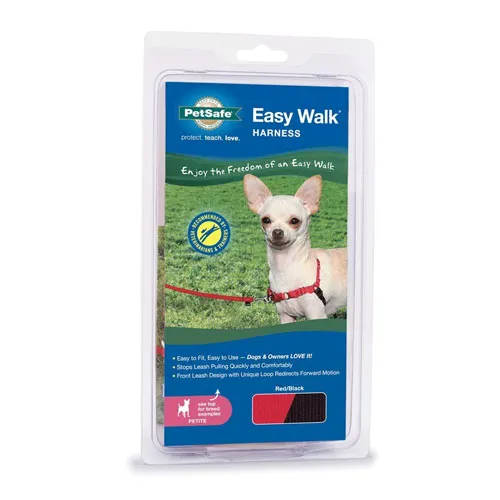 Some pups just donโt understand whoโs in charge of walks, so they drag and pull their people behind them. The PetSafeยฎ Easy Walkยฎ Harness was created by a veterinary behaviorist over 15 years ago to stop light to moderate pulling. It puts pet-parents in control of the leash and is recommended by vets and trainers. The patented front clip d-ring with martingale loop reduces leash pulling by steering your dog and provides more control of your walks. The quick-snap shoulder and belly straps allow you to fit the harness in just a few minutes. Our perfect-fit guarantee ensures it will fit pooches of all proportions. And, if your furry friend decides to turn the harness into a chew toy, we have a 1-year chew damage replacement policy for a minimal fee.