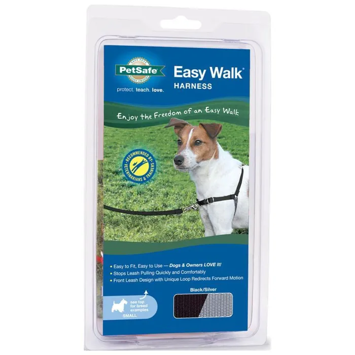 Some pups just donโt understand whoโs in charge of walks, so they drag and pull their people behind them. The PetSafeยฎ Easy Walkยฎ Harness was created by a veterinary behaviorist over 15 years ago to stop light to moderate pulling. It puts pet-parents in control of the leash and is recommended by vets and trainers. The patented front clip d-ring with martingale loop reduces leash pulling by steering your dog and provides more control of your walks. The quick-snap shoulder and belly straps allow you to fit the harness in just a few minutes. Our perfect-fit guarantee ensures it will fit pooches of all proportions. And, if your furry friend decides to turn the harness into a chew toy, we have a 1-year chew damage replacement policy for a minimal fee.
