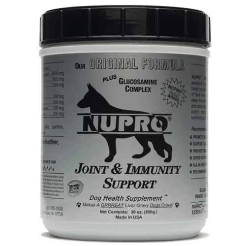 NUPRO All Natural Dog Supplement has no wheat, corn, fillers, grains, artificial sugars or preservatives, glutens or by-products of any kind.