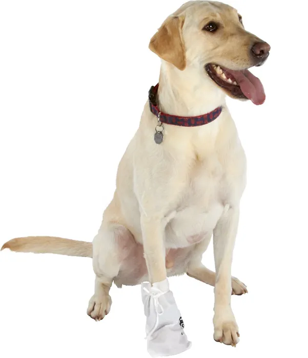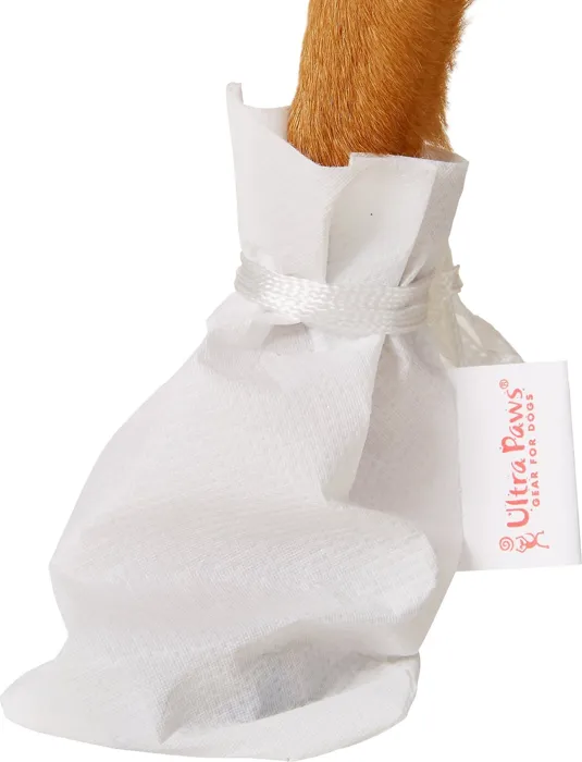 Remember to measure your pet for the paw-fect fit.ย Ultra Paws Disposable Dog Boot Wraps helps keep paws dry and clean during quick walks outside. The water-resistant design provides extra protection for your dogโs wounds in times of rain and puddles. These disposable wraps wear out quickly on abrasive surfaces, but each package comes with 4 boot wraps for easy replacement as needed.