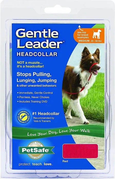 If your pooch is an extrovert who gets a little too excited on walks, take control of the leash with the PetSafeยฎ Gentle Leaderยฎ Headcollar. Created by a veterinary behaviorist over 30 years ago, this headcollar immediately, gently and safely helps you control unwanted leash behaviors like pulling, lunging, barking and jumping. A comfortable neoprene padded nose loop and collar puts pressure on the back of the neck instead of your dogโs throat, which prevents choking and coughing. Easily fit the headcollar on your furry friend in just a few minutes using the adjustable nose loop and neck strap with quick-snap. Our perfect-fit guarantee ensures the headcollar fits petite pups, giant pooches and all canine sizes in between. And, if your dog decides to turn the headcollar into a chew toy, we have a 1-year chew damage replacement policy for a minimal fee.