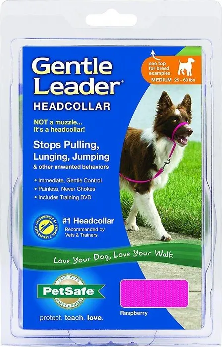 If your pooch is an extrovert who gets a little too excited on walks, take control of the leash with the PetSafeยฎ Gentle Leaderยฎ Headcollar. Created by a veterinary behaviorist over 30 years ago, this headcollar immediately, gently and safely helps you control unwanted leash behaviors like pulling, lunging, barking and jumping. A comfortable neoprene padded nose loop and collar puts pressure on the back of the neck instead of your dogโs throat, which prevents choking and coughing. Easily fit the headcollar on your furry friend in just a few minutes using the adjustable nose loop and neck strap with quick-snap. Our perfect-fit guarantee ensures the headcollar fits petite pups, giant pooches and all canine sizes in between. And, if your dog decides to turn the headcollar into a chew toy, we have a 1-year chew damage replacement policy for a minimal fee.