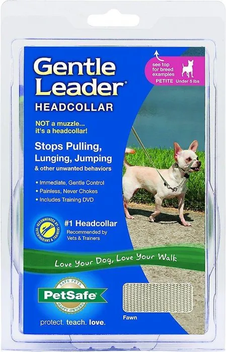 If your pooch is an extrovert who gets a little too excited on walks, take control of the leash with the PetSafeยฎ Gentle Leaderยฎ Headcollar. Created by a veterinary behaviorist over 30 years ago, this headcollar immediately, gently and safely helps you control unwanted leash behaviors like pulling, lunging, barking and jumping. A comfortable neoprene padded nose loop and collar puts pressure on the back of the neck instead of your dogโs throat, which prevents choking and coughing. Easily fit the headcollar on your furry friend in just a few minutes using the adjustable nose loop and neck strap with quick-snap. Our perfect-fit guarantee ensures the headcollar fits petite pups, giant pooches and all canine sizes in between. And, if your dog decides to turn the headcollar into a chew toy, we have a 1-year chew damage replacement policy for a minimal fee.