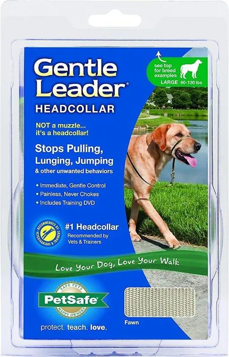 If your pooch is an extrovert who gets a little too excited on walks, take control of the leash with the PetSafeยฎ Gentle Leaderยฎ Headcollar. Created by a veterinary behaviorist over 30 years ago, this headcollar immediately, gently and safely helps you control unwanted leash behaviors like pulling, lunging, barking and jumping. A comfortable neoprene padded nose loop and collar puts pressure on the back of the neck instead of your dogโs throat, which prevents choking and coughing. Easily fit the headcollar on your furry friend in just a few minutes using the adjustable nose loop and neck strap with quick-snap. Our perfect-fit guarantee ensures the headcollar fits petite pups, giant pooches and all canine sizes in between. And, if your dog decides to turn the headcollar into a chew toy, we have a 1-year chew damage replacement policy for a minimal fee.