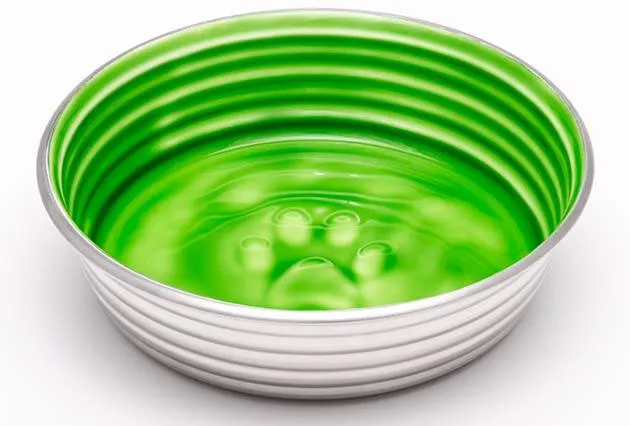 Reminiscent of famous French cookware, Le Bol Dog Bowls are gorgeous, extremely durable, stainless steel bowls with a ceramic-like interior. Interiors are brightly colored with a look of ceramic overstain, which highlights the ribbed walls and embossed paw in the bottom. Le Bols also have an integrated skid and noise-free rubber base. And of course, they are top-rack dishwasher safe.