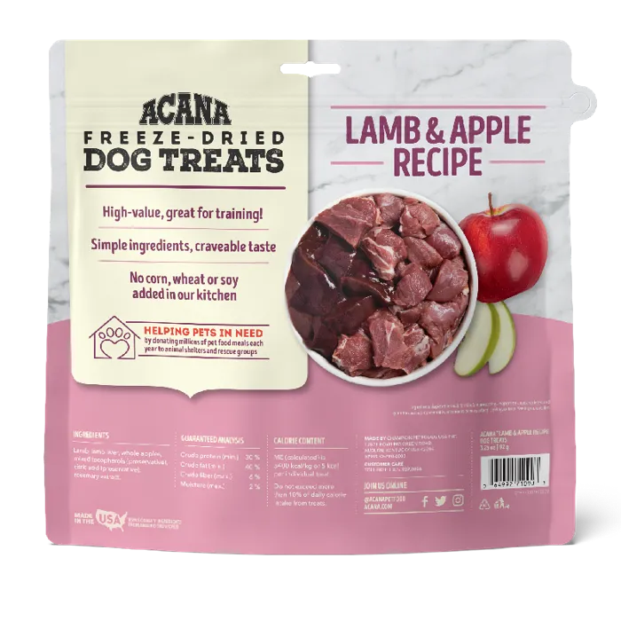 - Limited-ingredient dog treats made with delicious lamb and Red delicious Apples