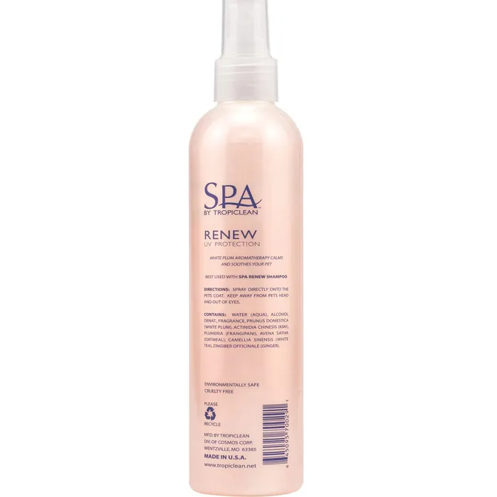 While most dogs don't date, it's still not a good idea to leave the house without a little bit of cologne. That's because TropiClean Spa Renew Cologne is more than just an odor-removing sprayโฆit protects pets from harmful, skin-damaging UV rays too! Spa Renew Cologne also contains oatmeal to soothe dry, itchy skin, while white tea and plumeria keep smelling his best. Because you just never know who's going to be sniffing you out on your next walk around the block.