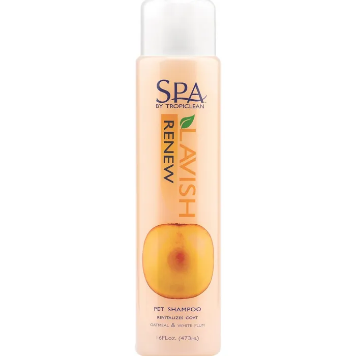 Give your pet pal a spa-worthy experience right at home with the TropiClean Spa Renew Shampoo for Dogs & Cats. It has ginger and white plum that leaves hair shiny and manageable, with oatmeal to soothe itchy skin. Designed to energize and restore health, this shampoo will nourish and restore your petโs skin and coat while leaving them with a long-lasting, fruity, floral scent. Follow it with Spa Nourish Conditioner and Spa Renew Cologne for a truly pampered pet!