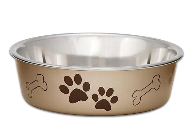 Award winning, patented Bella Bowls® are the BEST SELLING BOWL in the pet industry – and for good reason! Functional and beautiful, Bella Bowls are truly the perfect pet dish. Loving Pets brings new life to veterinarian-recommended stainless steel dog bowls and pet feeding dishes by combining a stainless interior with an attractive poly-resin exterior. A removable rubber base prevents skids and spills, eliminates noise, and makes Bella Bowls fully dishwasher safe. Bella Bowls Classic and Metallics Collection are available in an expanding palette of decorative colors with our paws and bones design. For a decorative design twist, try our Bella Bowls Designer and Expressions Collection, featuring an array of unique designs and colors. Bella Bowls Classics and Metallics Stainless Steel pet dishes come in four sizes, sure to be a perfect fit for your dog, cat or any other pet.