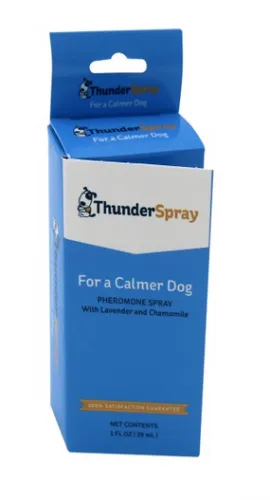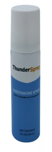 ThunderSpray mimics a mother's natural pheromones and provides soothing fragrances of lavender and chamomile. ThunderSpray can be used as an area spray or sprayed directly onto the ThunderShirt to allow the calming pheromones and fragrances to continue to release for an extended period of time. ThunderSpray is great for vet visits, crating, car travel, fear of thunder, pet and owner separation, reactivity to other animals or people, general fearfulness and many other issues.