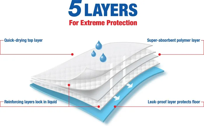 Key Benefits- Pads have 5 layers for extreme absorption and protection.