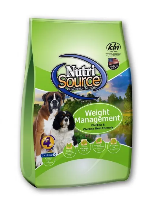Made for heavier and less active pups, NutriSource Weight Management Chicken and Chicken Meal Dry Dog Food offers a low fat and easy to digest recipe. High quality ingredients like humane certified chicken are used in addition to the added chondroitin and glucosamine to help joints and mobility. NutriSource Weight Management Chicken and Chicken Meal Dry Dog Food also has higher amounts of fiber to help your pup feeling full, longer! Nutrisource recipes always include their Good 4 Life system with ingredients that work together to promote gut health often showing health improvements within the first feeding!