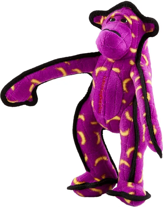 Tuffy's Zoo Monkey Dog Toy is ideal for fetching, tugging and whipping around at your dogโs leisure. Itโs made with three layers of safe, non-toxic fibers: soft fleece, industrial grade luggage material and plastic coating. All three are bonded and sewn together to make one ultra "tuff" layer, ensuring this toy is just as durable as it is fun. The Zoo Monkey Dog Toy also has protective pouches around its squeakers as an added safety measure in the unlikely event your dog gets to the core. This toy is great for indoor use because of its soft exterior, perfect for outdoor use because it floats in water and easy to clean because itโs machine washable.