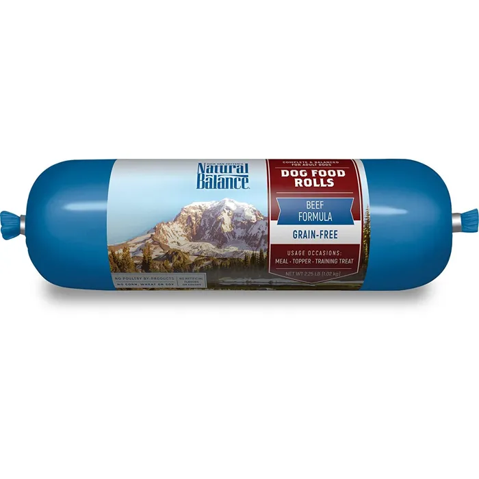 Natural Balance Beef Formula Dog Food Rolls offer even the pickiest eaters a highly-palatable option for treats, full meals or additions to dry food. This brand new formula features premium beef, an excellent source of protein and flavor dogs crave. It's an excellent option for training, senior dogs, or those on the go. The Rolls are versatile and can easily be grated or crumbled to combine in dry food or to feed to older dogs. They can also be chopped or sliced for ease of travel.รฅร