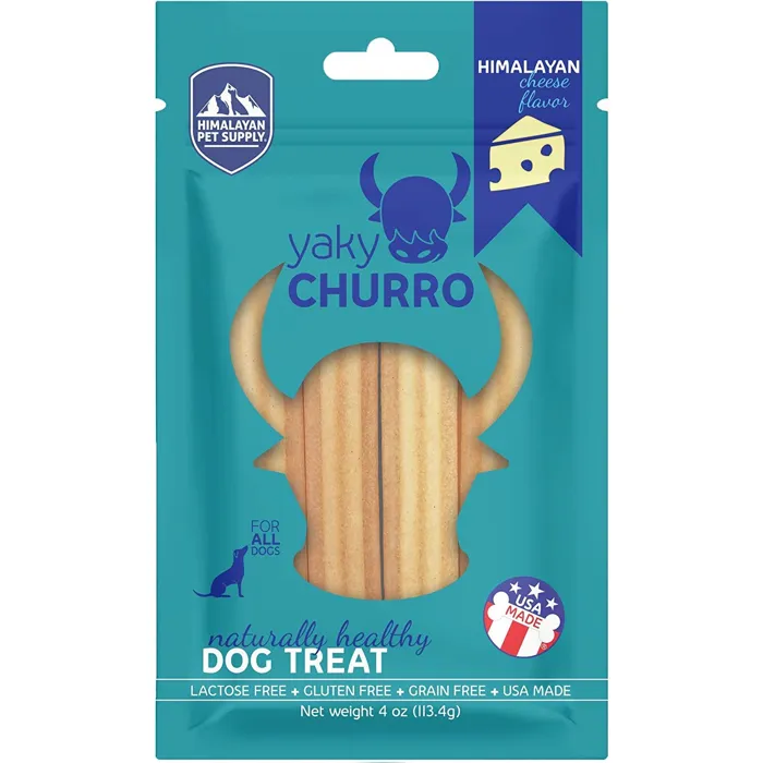 Himalayan Dog Chew is known for making innovative treats from Himalayan hard cheese, and their Yaky Churro Himalayan Cheese Dog Treats provide a uniquely delicious example. These authentic treats are made in the USA, but they follow an ancient recipe that converts milk into hard cheese using the same methods and techniques perfected by the people of the Himalayas. A dash of salt and splash of lime are added, and the cheese is sundried, smoked and made into a chewy churro stick. The result is a smoky cheese-flavored treat with a softer texture thatโs easier for all dogs to chew, even puppies and seniors.