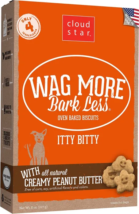 Wag More Bark Less Oven Baked Grain Free Itty Bitty Creamy Peanut Butter Dog Treats 8-Oz
